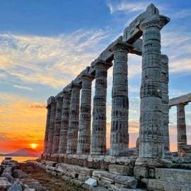 Raggiungi Capo Sounio, dove si trova il magnifico Tempio di Poseidone, e preparati a rimanere sbalordito dalla vastità del Mar Egeo che si estende davanti a te. Esplora le antiche rovine al tuo ritmo, lasciando che i dintorni ti trasportino in un'epoca passata.