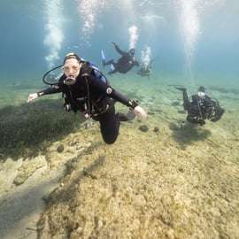 Immergiti nell'incredibile mondo sottomarino di Atene con la nostra esperienza di immersione guidata a Vouliagmeni! Esplora le tre splendide baie e scopri i numerosi siti d'immersione e le barriere coralline che rendono questa zona un vero paradiso per i sub.