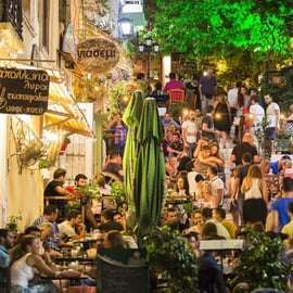 Dirigiti verso l'affascinante zona di Anafiotika, con le sue stradine ai piedi dell'Acropoli. Continua a passeggiare per le vie di Plaka, Monastiraki e Psyri, scoprendo i ristoranti e i bar più interessanti che vale la pena visitare.