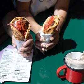 Il tour prosegue con i grandi classici dello street food greco: il souvlaki o il gyros avvolti nel morbido pane pita, un'esplosione di sapore che ti conquisterà. Scoprirai poi il peinirli, una deliziosa pizza greca dal gusto unico, con un mix di formaggi irresistibile e un impasto fragrante.