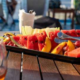 Dopo il bagno, goditi un pranzo a buffet greco appena preparato a bordo, con opzioni vegetariane, vegane, senza lattosio e senza glutine. Accompagna il tuo pasto con vino bianco, birra e bevande analcoliche locali illimitate, tutto incluso nel tuo biglietto.