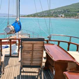 Poi, ormeggia all'isola di Moni o Metopi. Tuffati nelle acque turchesi per una nuotata rinfrescante o fai snorkeling con l'attrezzatura fornita. Galleggia con i tubi galleggianti, rilassati sul ponte sotto le aree ombreggiate o goditi semplicemente l'ambiente sereno.