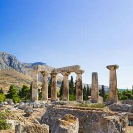 Poi, immergiti nella storia alle rovine dell'Antica Corinto. Famosa per la sua ricchezza e la sua architettura, Corinto fu teatro dell'ultima resistenza greca contro Roma. Dopo la sconfitta, i Romani rasero al suolo la città per poi ricostruirla come insediamento romano, con teatri, un foro e templi imperiali. Solo l'antico Tempio di Apollo sopravvisse alla distruzione.