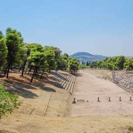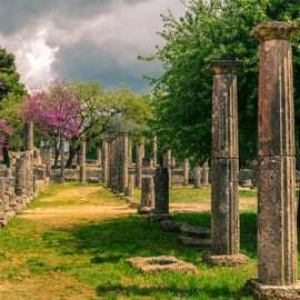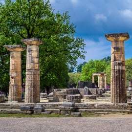 Immergiti nello scenario mozzafiato del Peloponneso, culla dei Giochi Olimpici! Un viaggio che ti condurrà tra i resti maestosi di templi iconici e antiche strutture sportive, un tuffo nel cuore pulsante dell'antica Grecia.