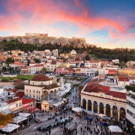 Goditi una passeggiata a Plaka, il quartiere più antico della città, noto per le sue strade pittoresche e il fascino tradizionale, e a Monastiraki, famoso per la sua atmosfera vivace e i mercati locali. Il tour si conclude con viste panoramiche mozzafiato dal Monte Licabetto, il punto più alto del centro di Atene.