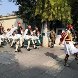 Ammira l'imponenza del Parlamento greco e l'impeccabile uniforme delle guardie presidenziali. Lasciati incantare da un'oasi di verde nel cuore pulsante della metropoli: la residenza del Primo Ministro e lo Stadio Panatenaico, gioielli architettonici incastonati in un contesto esclusivo. Esplora il sito del primo villaggio olimpico, un luogo ricco di storia, ammirandone l'architettura e gli splendidi affreschi.
