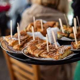 Inizia la tua avventura con una dimostrazione del tradizionale caffè greco abbinato a un dolce "halva di semolino". Impara poi a prevedere la fortuna con la tua tazza! Assaggia torte dolci e salate, mostrando l'arte della pasta fillo e della bougatsa. Impara a preparare il tuo Gyros, la vera essenza della gastronomia greca. Lascia un po' di spazio per i salumi greci abbinati a un trio di formaggi.