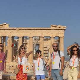 Scopri l'Acropoli, il simbolo della Grecia! Entrerai nell'Acropoli dal versante sud per evitare la folla e per visitare il Santuario di Dioniso e il Teatro di Dioniso, costruito nel V secolo a.C.. Quando inizierai a salire sulla collina sacra, ti si aprirà una vista mozzafiato sulla città sottostante. La tua guida ti spiegherà nel dettaglio i gloriosi monumenti dell'Acropoli, come il Partenone, l'Eretteo, i Propilei, il Tempio di Nike, il Monumento di Agrippa e i monumenti circostanti, come l'Odeon di Erode Attico, l'Osservatorio, il Filopapo, la Collina di Marte e la Collina di Pnyx.