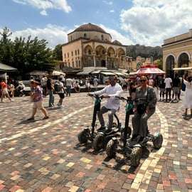 La nostra avventura inizia nell'incantevole quartiere di Plaka, il più antico e pittoresco di Atene. Mentre il sole splende, ci attrezzeremo con i nostri scooter elettrici a quattro ruote, pronti a scoprire il ricco paesaggio storico della città.